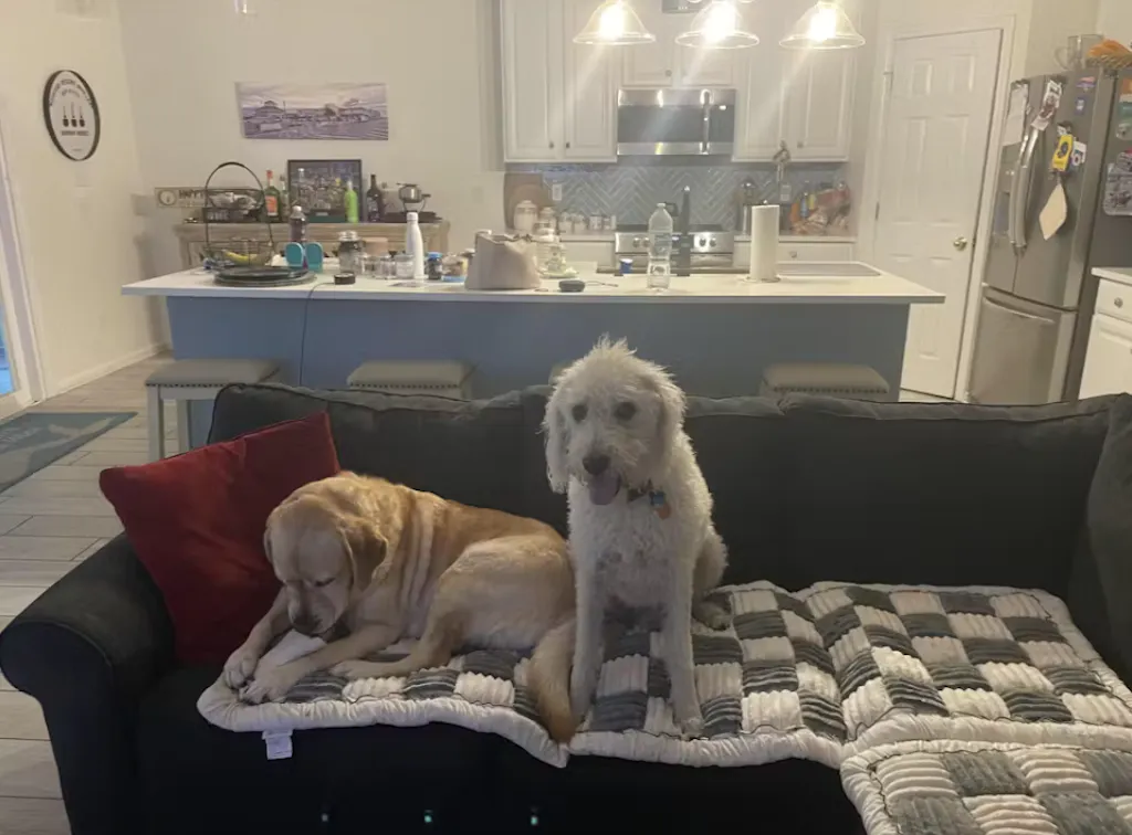Adoriamo questa fodera per divano. Ha il supporto in gomma e non scivola, cosa che adoro. Morbido e non strappa i capelli. Il peso del tuo cane: 51-70 Razza: Collie e pastore australian
