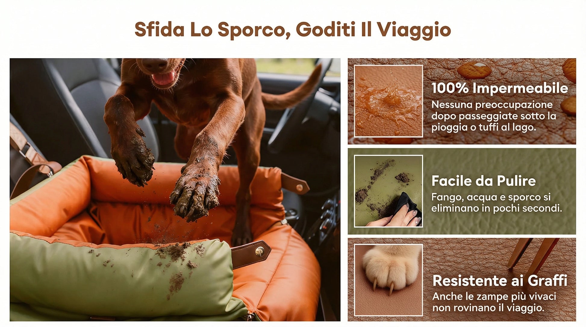 Il seggiolino auto è esattamente come me lo aspettavo: molto accogliente, confortevole e davvero facile da pulire. Il mio cane ci sta comodo e si sente subito al suo posto durante il viaggio.